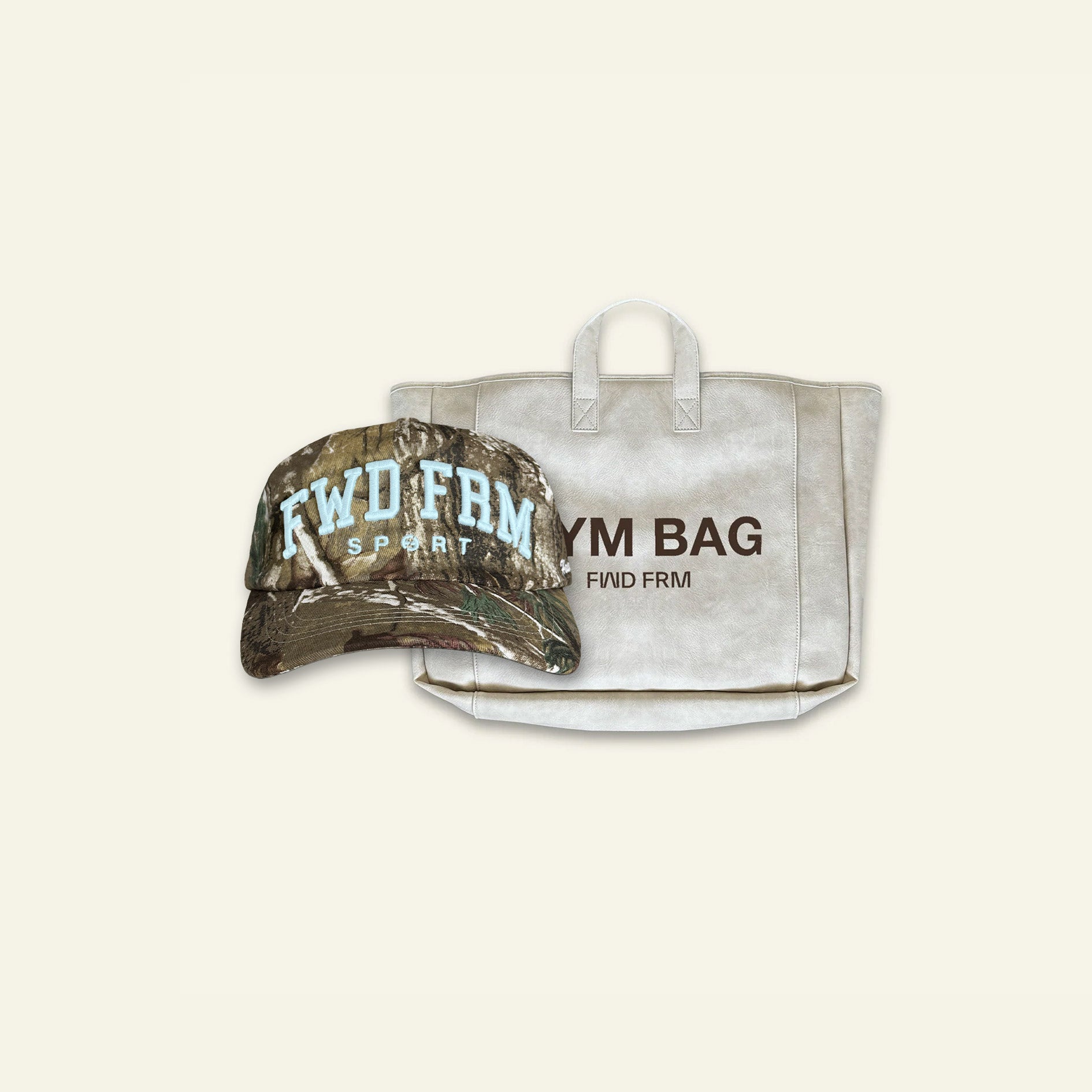 Crafted from premium vegan leather, the tote is spacious, versatile, and eco-friendly, whether you’re heading to the gym, work, or a weekend away. Paired with the FWD FRM Cap, designed in 100% cotton with our signature embroidered details, this bundle keeps you moving with purpose while looking refined.